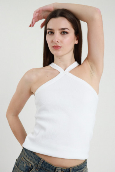 Elastisches, geripptes Tanktop mit quadratischem Ausschnitt. 70 %vi 25 %co 5 %ea