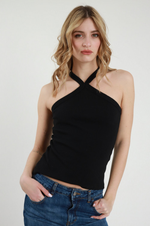 Elastisches, geripptes Tanktop mit quadratischem Ausschnitt. 70 %vi 25 %co 5 %ea