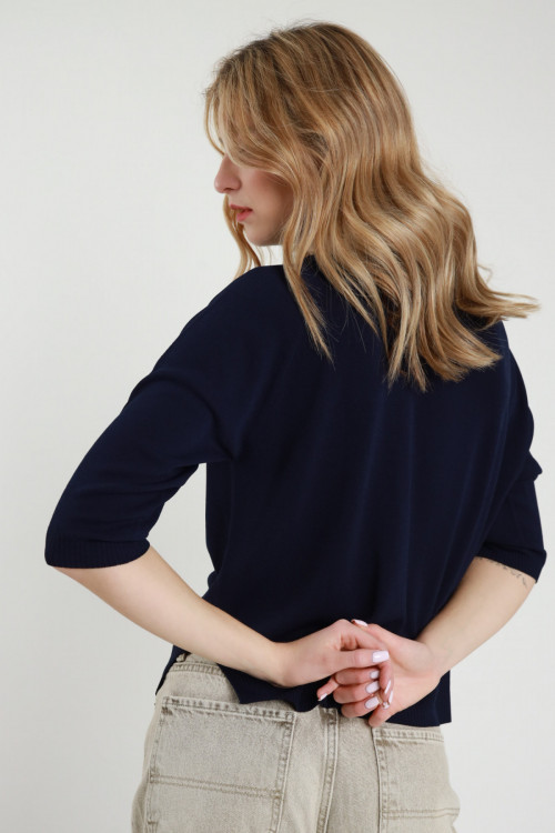 Maglia in Cotone Punto Riso Manica 3/4, Scollo Barchetta.
