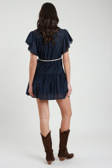Minikleid, halbe Ärmel, Knopfverschluss mit Besatzdetails, Rüschen am Rock und Kordelgürtel an der Taille. 85%ly 15%pl+95%pl 5%ea