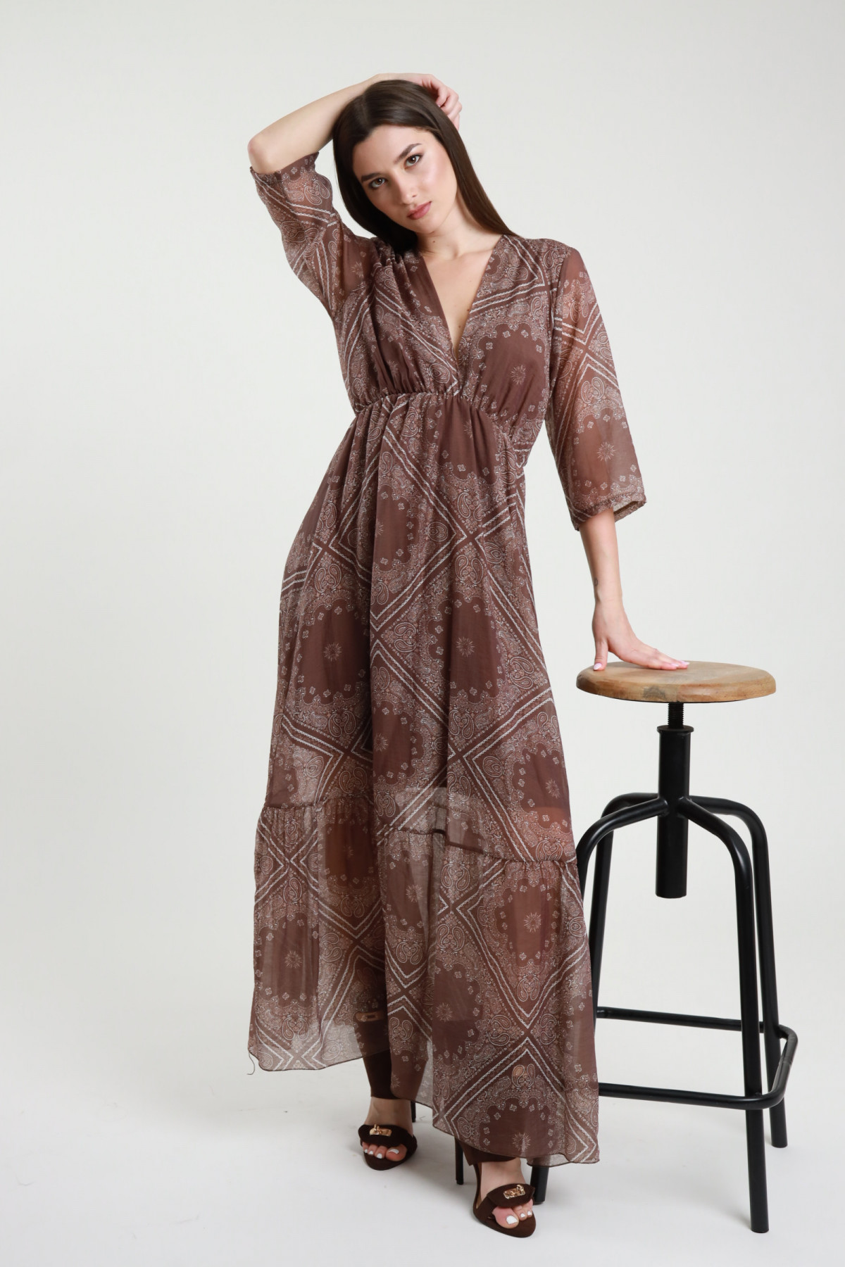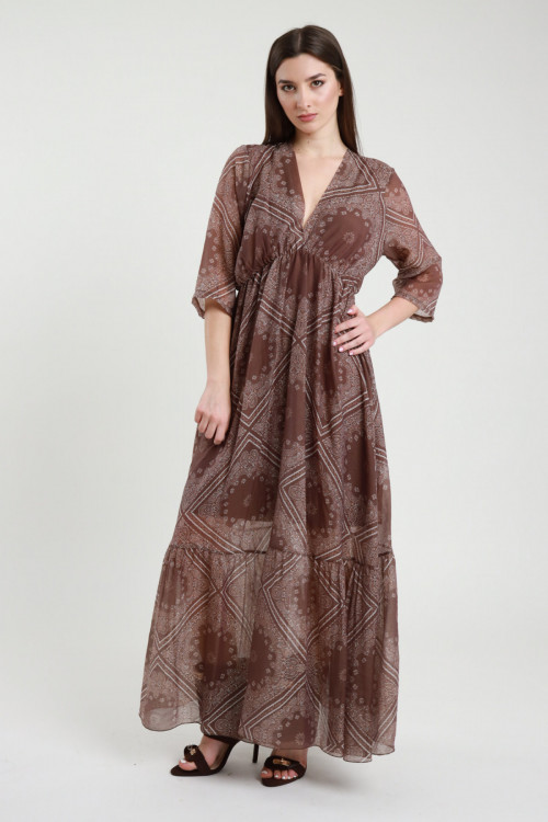 Abito c/fiocco fantasia 87%ly 13%pa+95%pl 5%ea