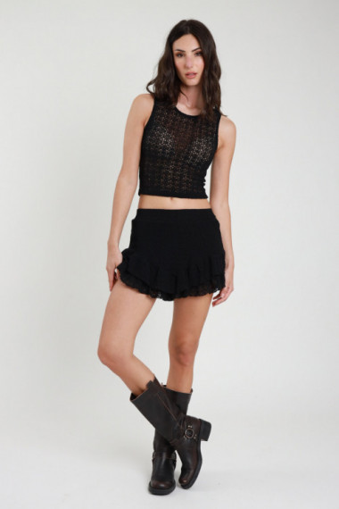 Mini Gonna Pantalone Traforata con Elastico in Vita e Volant. 99%pl 1%ea