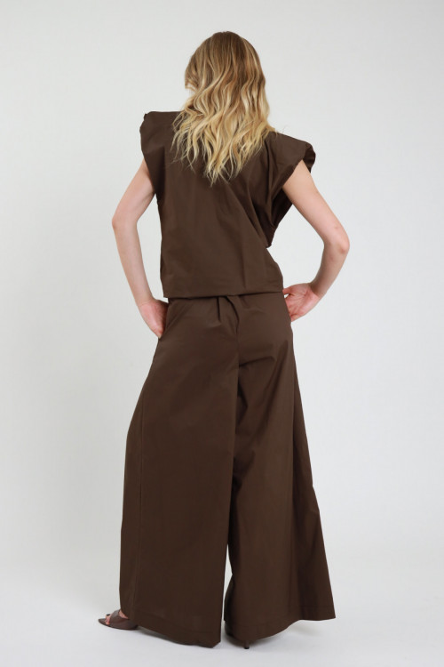 Pantalone in Cotone a Palazzo con Gamba Molto Ampia, 2 Tasche, Chiusura Bottone e Zip. 100%co