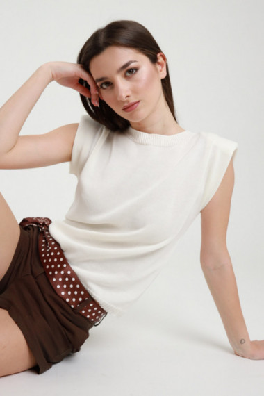 T-shirt Over Girocollo in Viscosa Elasticizzata, Effetto Raso con Inserto sulle Maniche in Georgette Semitrasparente.