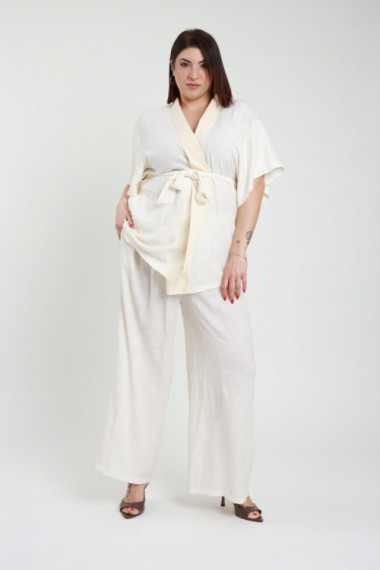 Pantalone a Palazzo 2 Tasche con Pences, Semitrasparente con Sottoveste Coulotte - Linea Curvy Susy Star.