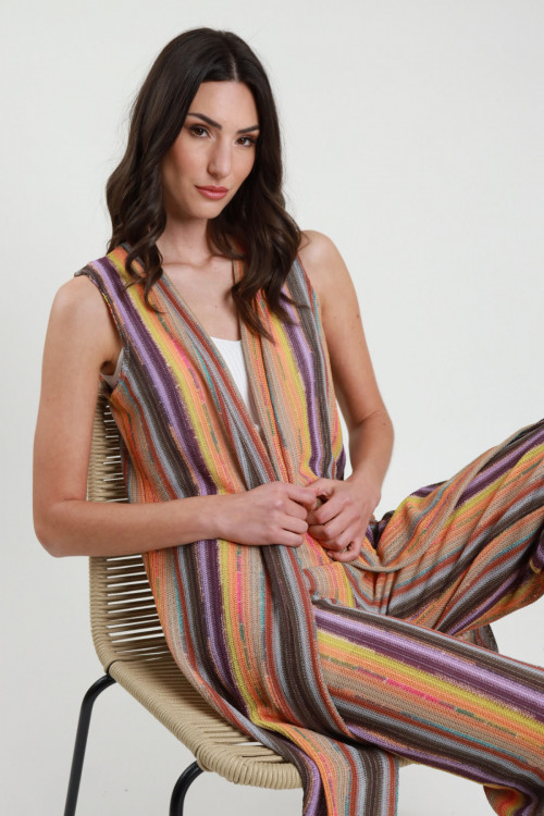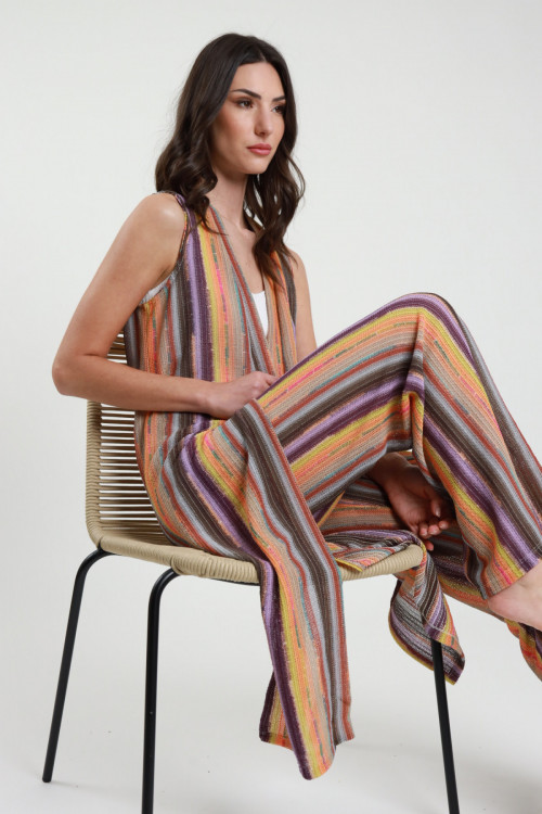 Completo a Pois composto da Gilet Over Monopetto + Pantaloni a Palazzo con Elastico sul Retro e Tasche Laterali.