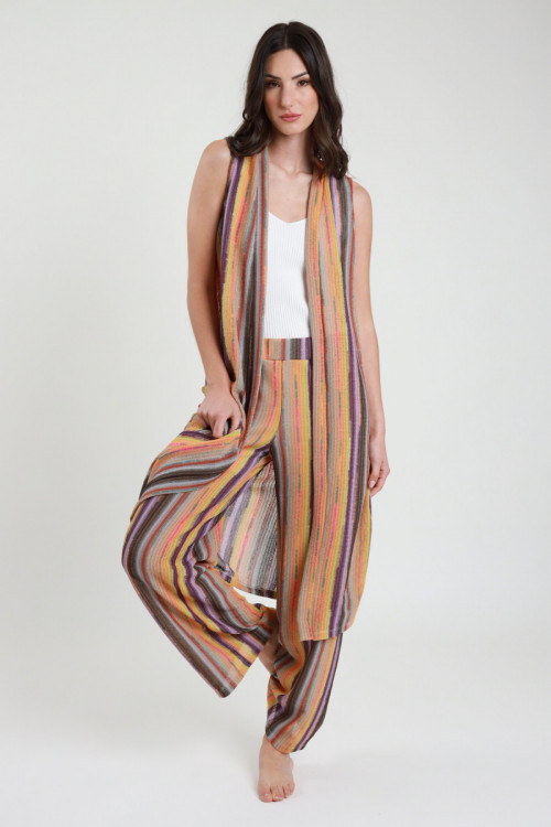Gilet Lungo Aperto con Bottoni Stile Militare e Tasche a Filetto.