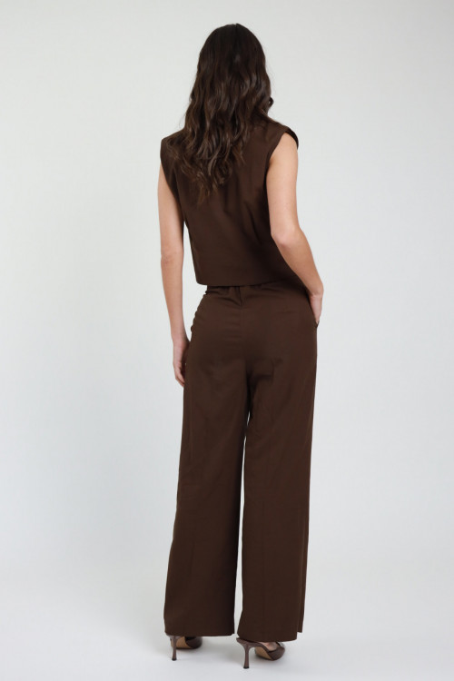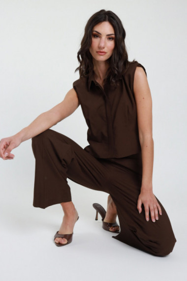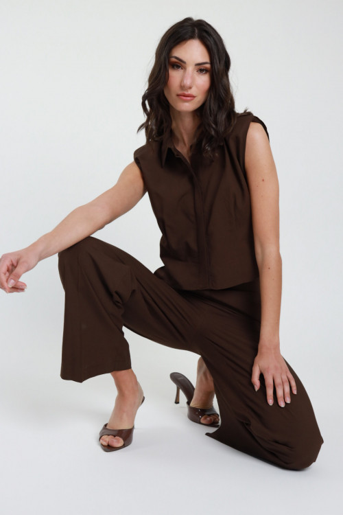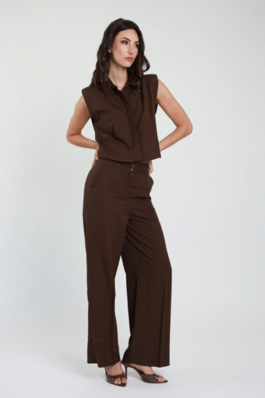 Outfit: Crop-Shirt mit verdeckten Knöpfen und Hose mit geradem Bein, Portemonnaietaschen und doppeltem Knopfbund. 80 %vi 20 %li