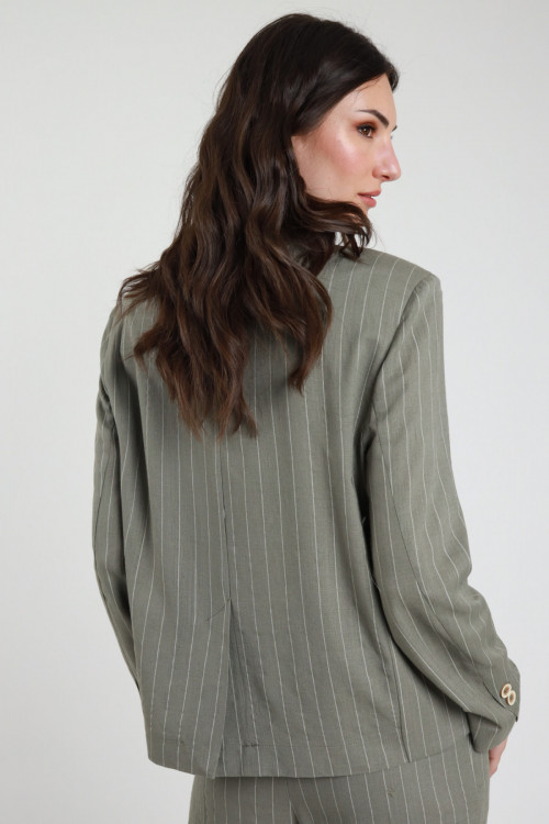 Blazer Monopetto Gessato, Tasche Filetto con Pattina.