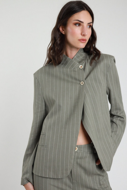 Nadelstreifen-Blazer mit zwei überkreuzten Knöpfen am Revers. 70 %vi 30 %li