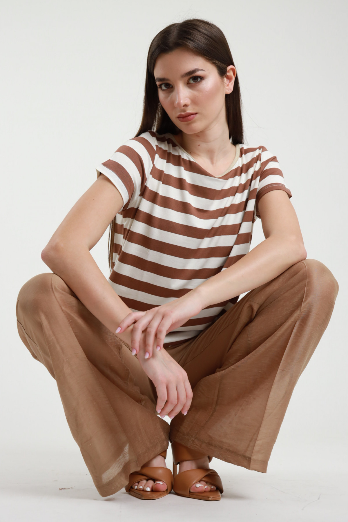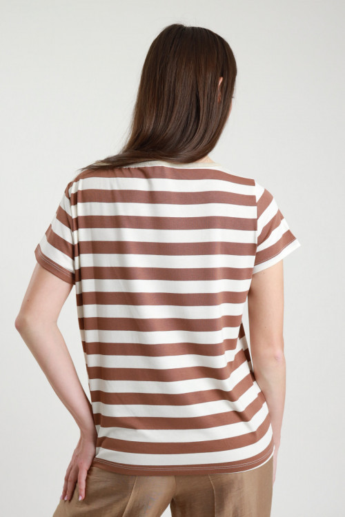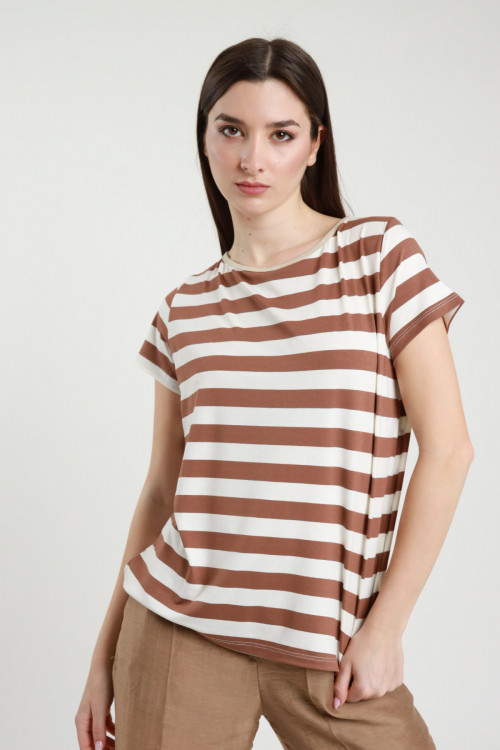 T-Shirt Mezze Maniche a Righe in Viscosa Elasticizzata. 94%vi 6%ea