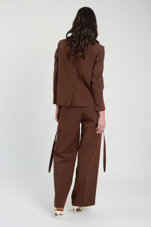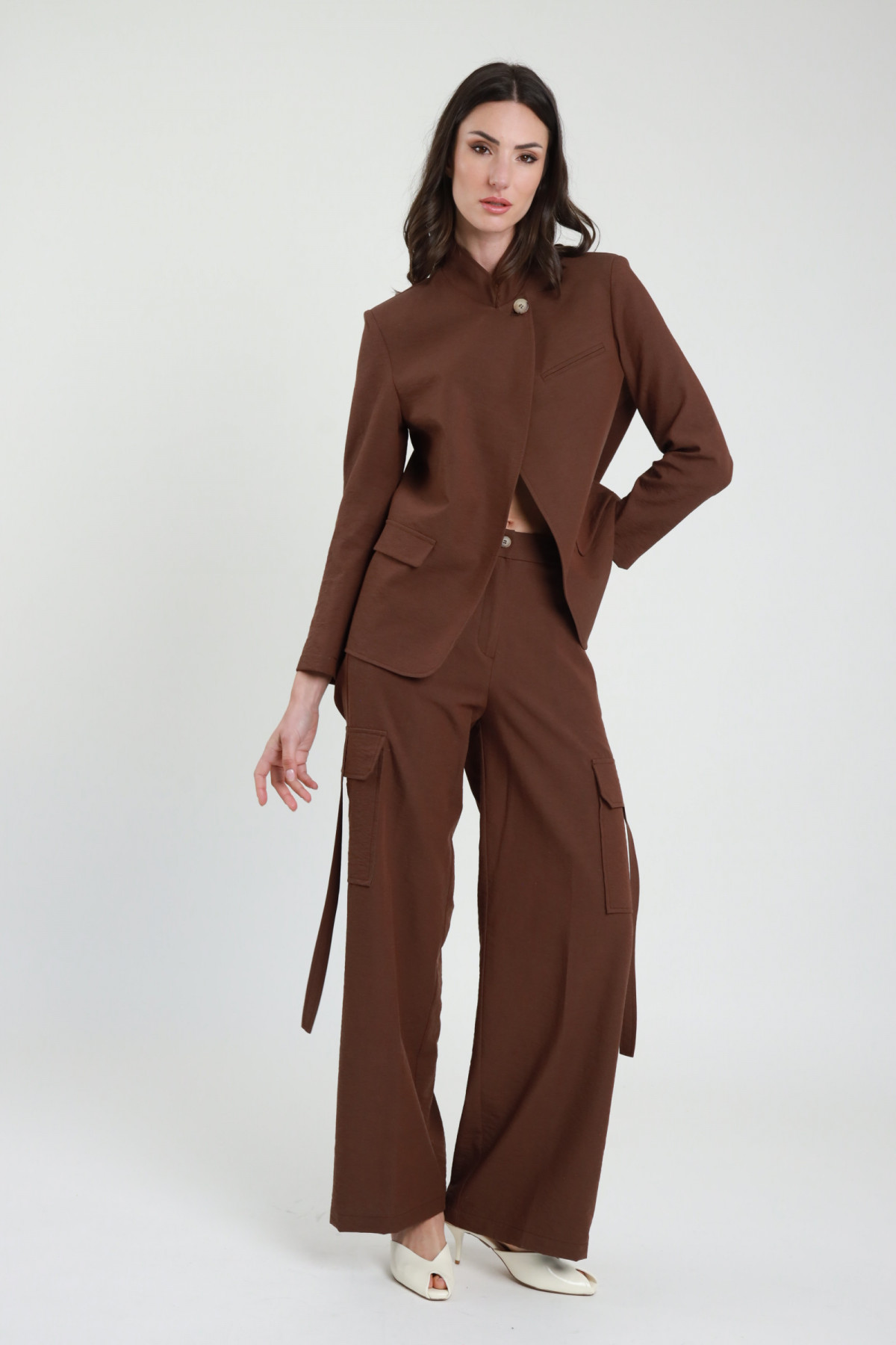 Elastische, eiförmige Hose mit mittlerer Taille, 2 Taschen, Reißverschluss und Knopfverschluss. 61%co 36%pa 3%ea