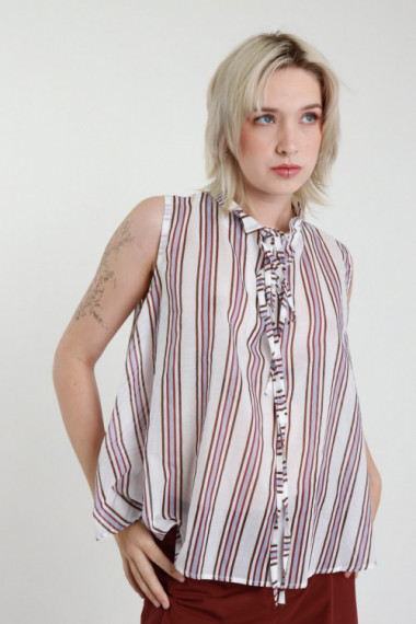 Camicia Smanicata in Cotone in Fantasia con Passamaneria sul Retro.
