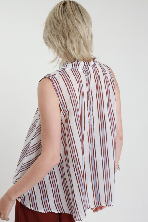 Camicia Smanicata con Dettaglio Pizzo in Cotone Elasticizzato, in Fantasia Righe.