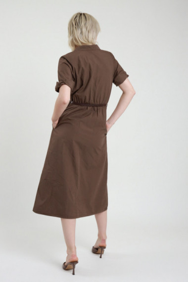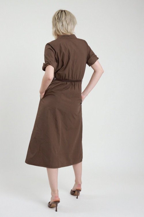 Midikleid aus Baumwolle mit halben Ärmeln, Knopfverschluss vorne mit Kragen, Raffung in der Taille mit Gummizug und unter der Brust, Gürtel aus Kunstleder. 100 % co