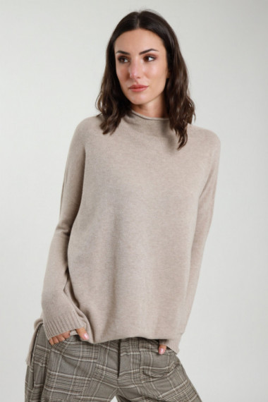 Langer, übergroßer Pullover aus weicher Halbviskose mit Kraterhals-Detail