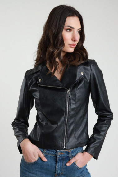 Chiodo Corto in Ecopelle con Chiusura a Zip.