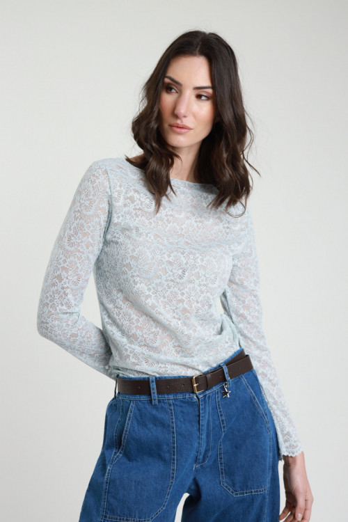 Long-sleeved T-shirt with boat neckline and lace on the bottom. 80%vi 9%pa 6%ea 5%ws