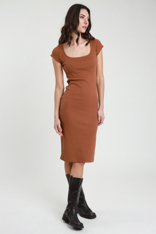 T-shirt Elasticizzata Maniche Lunghe con Scollo Barchetta a Righe.