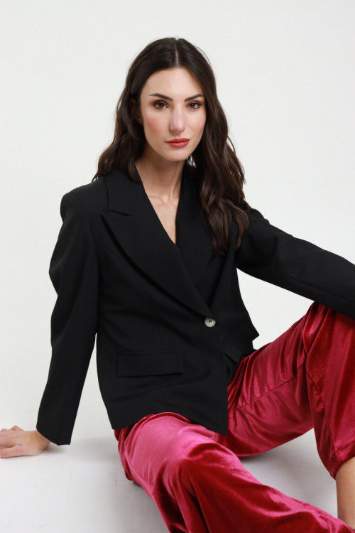 Zweireihige, übergroße Samtjacke. 50 %rPET 30 %pl 10 %ny 3 %ea+100 %pl