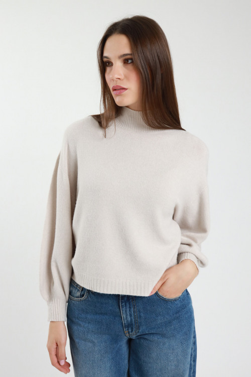 Maglia Traforata Scollo V con Maniche a Palloncino, dettaglio Tessuto Micro Paillettes.