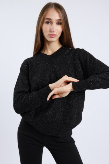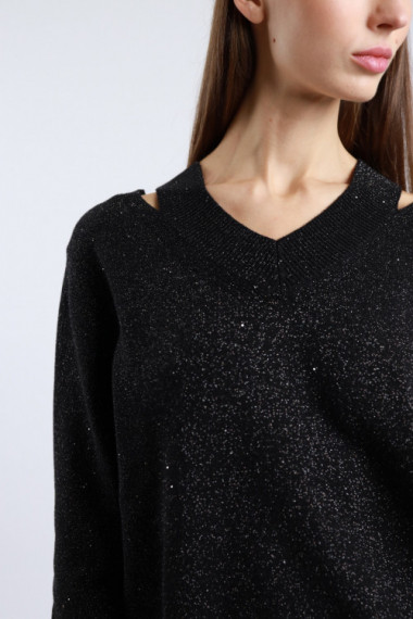 Cu-out-Hemd in Lurex-Ausschnitt V und Mikro-Paillettenanwendungen. 35%PA 33%VI 32%PA
