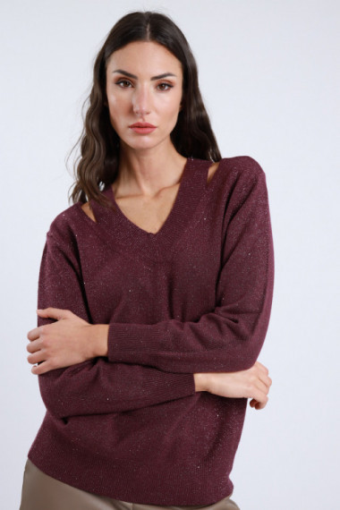 Cu-out-Hemd in Lurex-Ausschnitt V und Mikro-Paillettenanwendungen. 35%PA 33%VI 32%PA