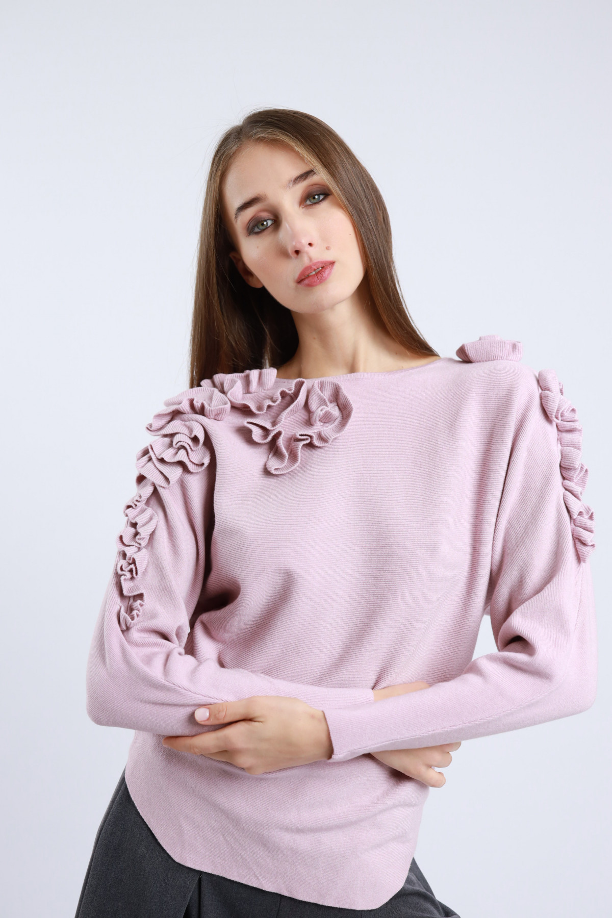 Bootsausschnittshemd mit Rosenanwendungen.  56%VI 28%PL 16%PA