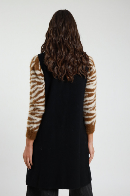 Lange Weste mit Vordertaschen aus Kunstpelz. 50 % vi 28 % pl 22 % ny