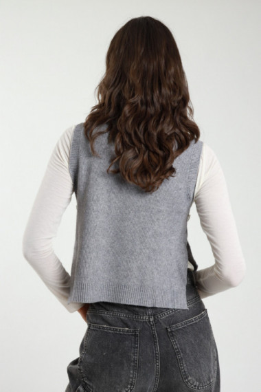 Gilet in Maglia con Bottoni e Tasche Frontali Finte.