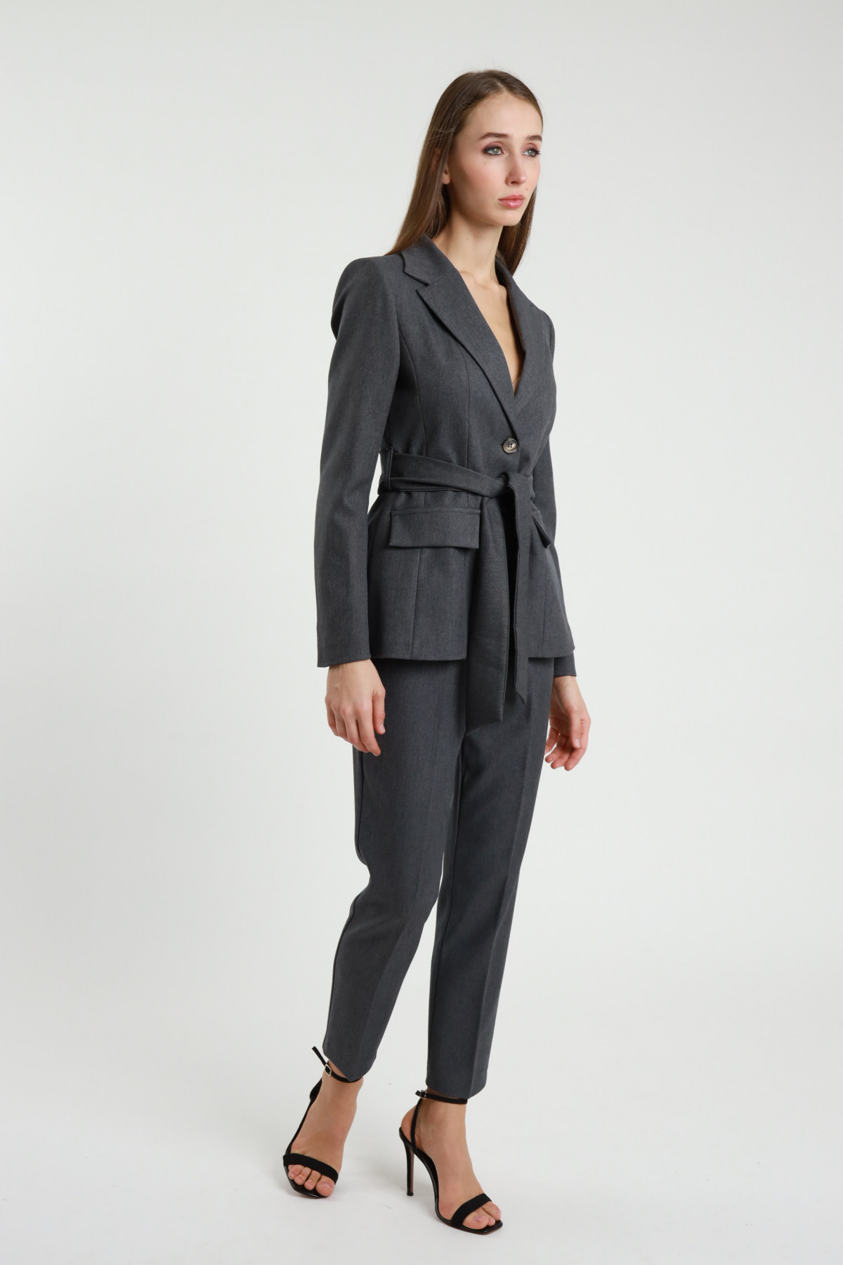 Set bestehend aus Jacke und Hose. Jacke mit Taillengürtel, klassischem Revers, Ein-Knopf-Verschluss und Vordertaschen. Schmale Hose mit Seitentaschen. 100%pl