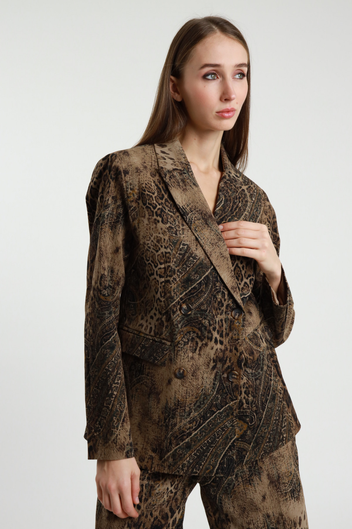 Zweireihiger Blazer mit Animal-Print und Leistentaschen mit Patte. 97 % CO 3 % Stück