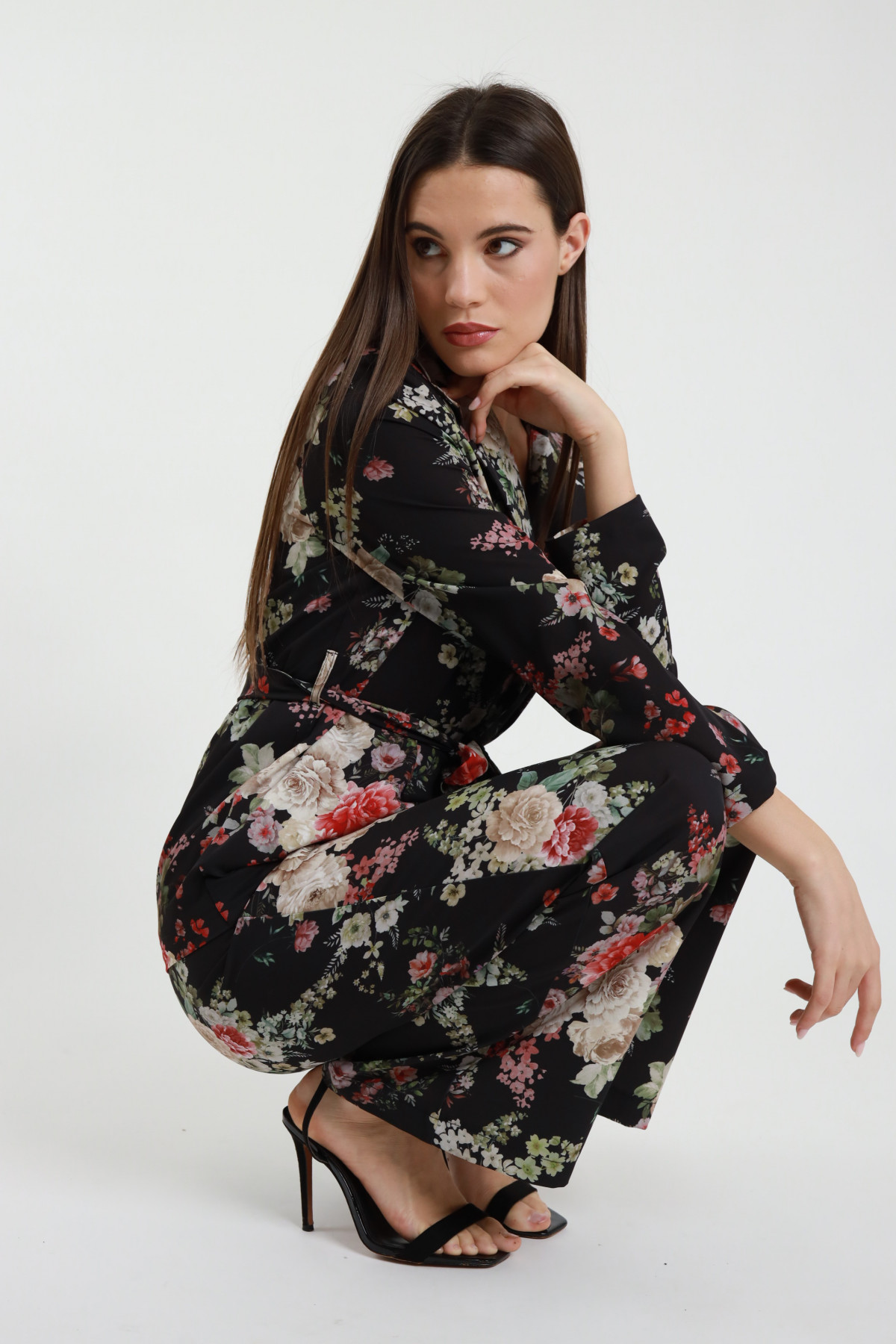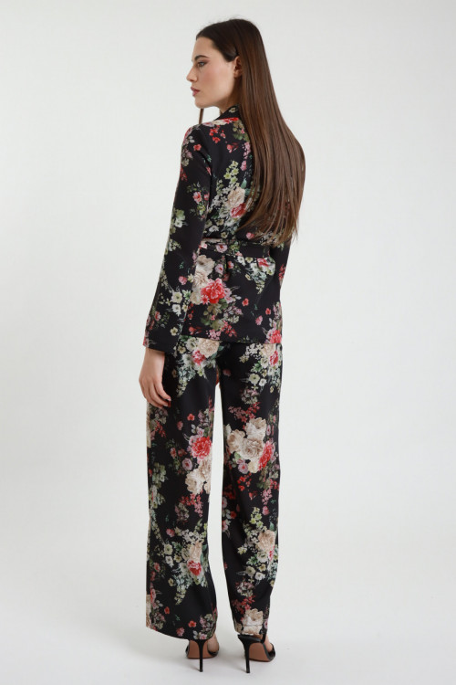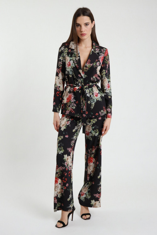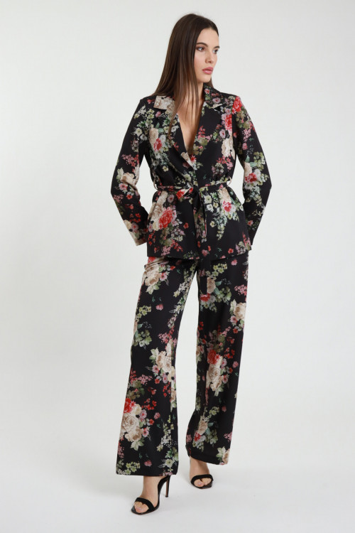 Vollständig in Fantasie. Jacke mit Gürtel und geraden Hosen. 94%PL 6%EA+100%PL