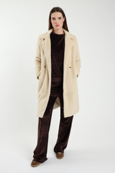 Long vest with rever and belt in life. Side pockets with portfolio. 65%PL 30%AC 5%ea