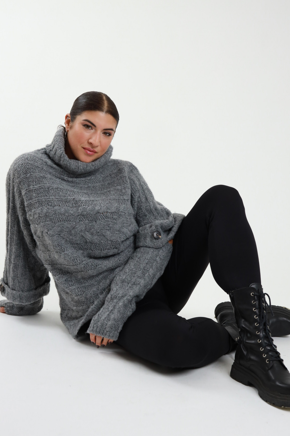 Zopfpullover, Stehkragen, 3/4 weite Ärmel mit Ärmeln – Curvy Susy Star Line. 65 % pc 17 % pa 9 % wo 9 % vi