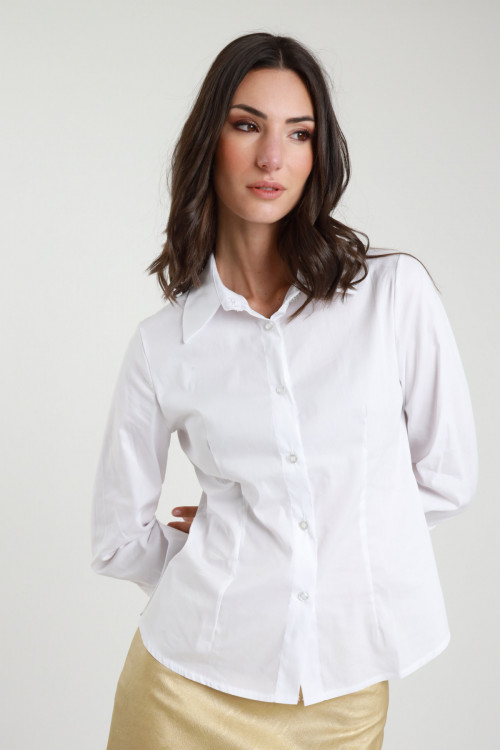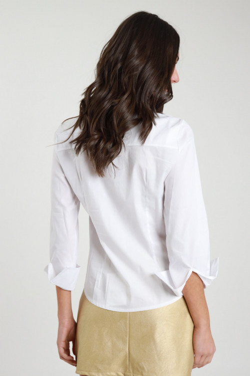 Camicia Slim Elasticizzata con Dettaglio Bottone Gioiello.