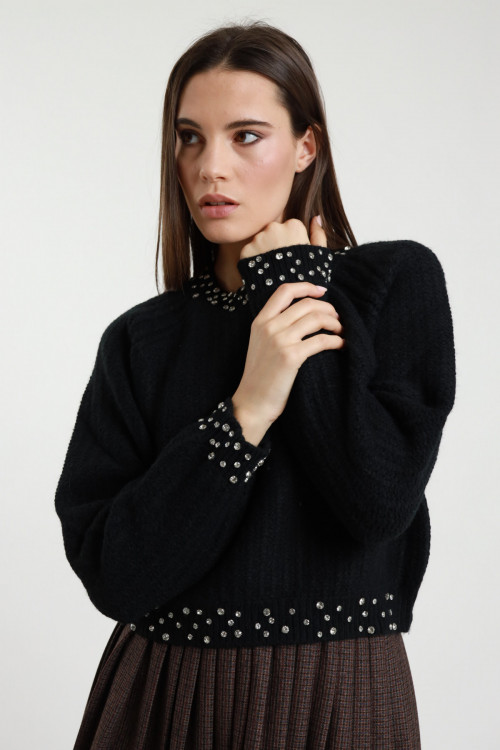 Pullover a Collo Alto con Trecce sul Fronte ed Orli a Costine.