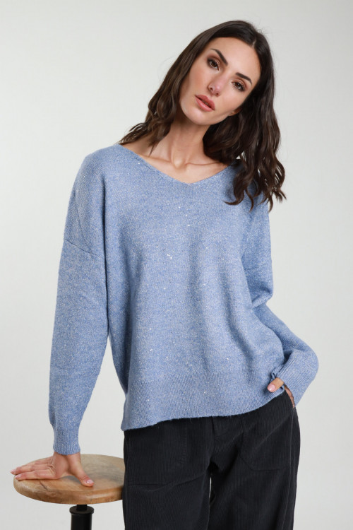 Hemd mit Mikropailletten und V. Ausschnitt 30%PL 29%PC 25%VI 10%PA 6%WO