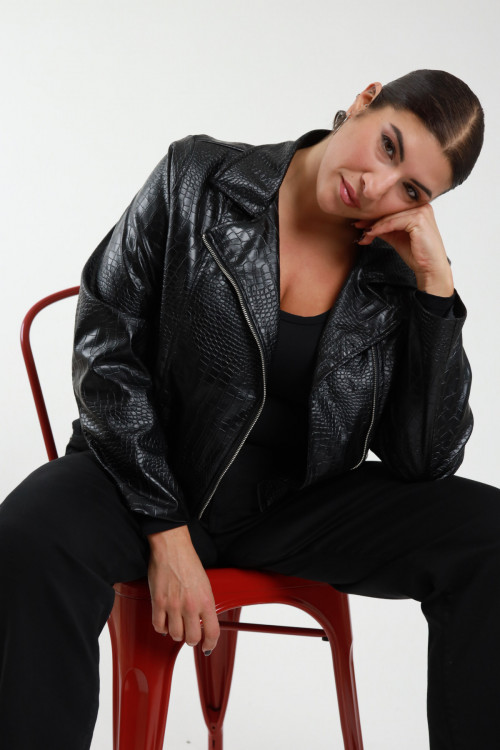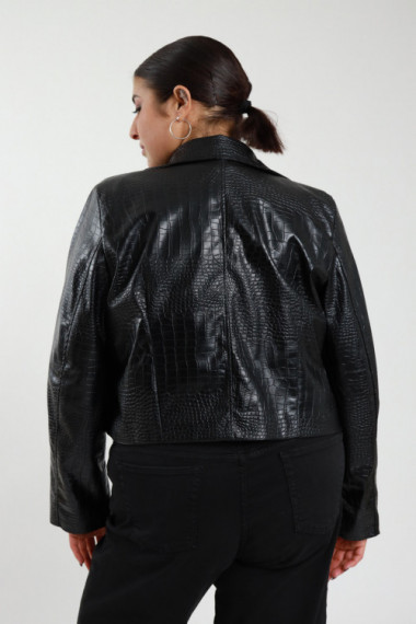 Crop-Over-Bikerjacke aus Öko-Leder mit Kroko-Print – Curvy Susy Star Line. 50%vp 50%pl
