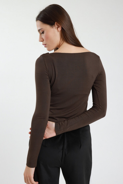 Langärmliges Hemd mit U-Boot-Ausschnitt. 94 %vi 6 %ea