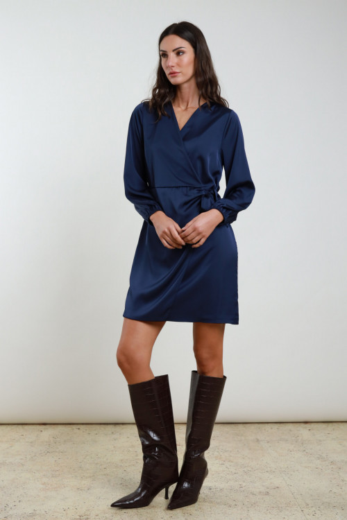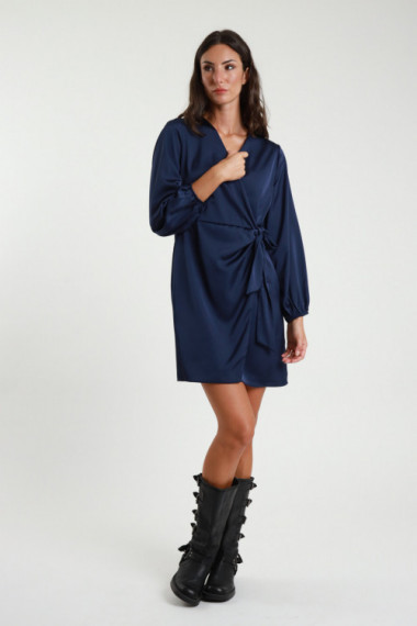 Viscose satin dress with V -neckline and lace closure with crossroads. 100%VI