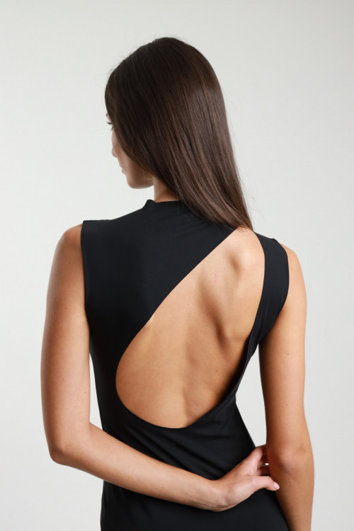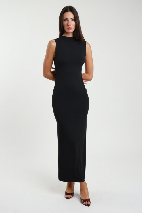 Abito Lungo Smanicato in Scuba con Gonna in Tulle Semitrasparente.