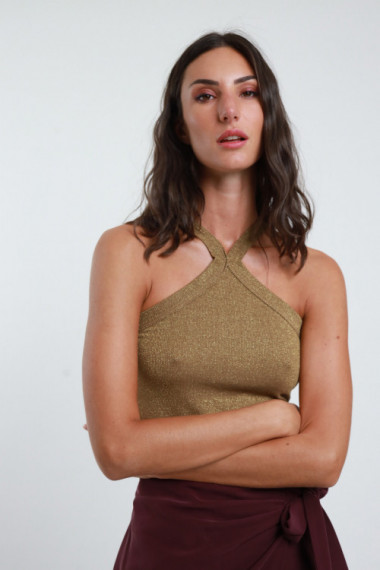 Cross -Colored American Ausschnitt mit Lurex -Rippen. 60%VI 35%PL 5%EA