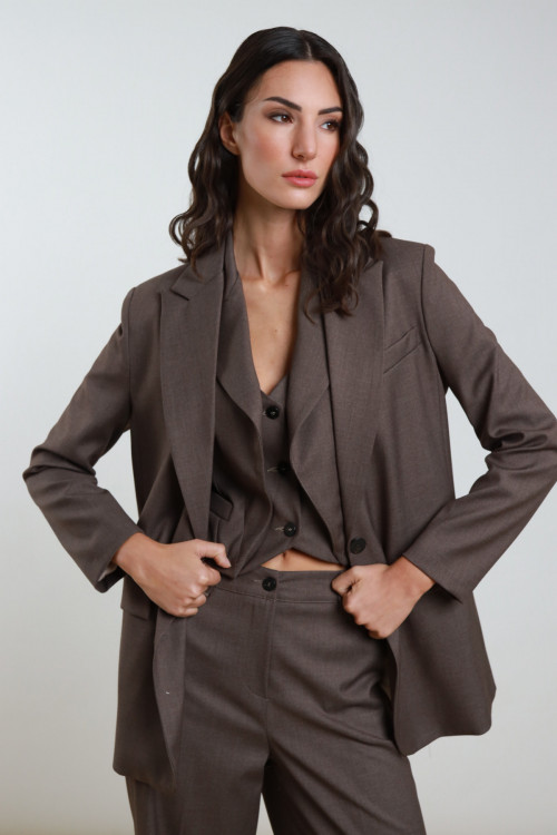 Single -Bastent -Jacke mit klassischem Rever, schließen einen Knopf. Filetentaschen mit Skate. 62%PL 35%VI 3%EA+98%PL 2%EA