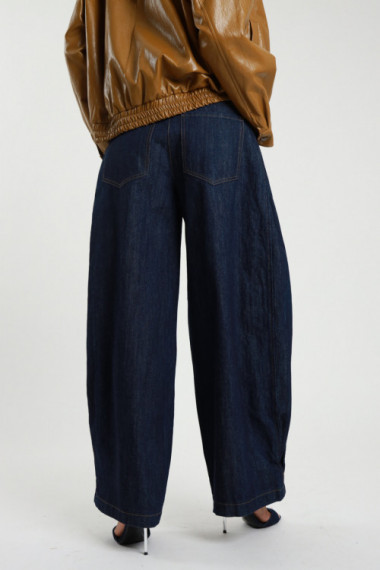 Denim with flocked printing, ove -cutting cutting with aspect, wallet pockets and waist strap. 74%PL 23%VI 3%ea