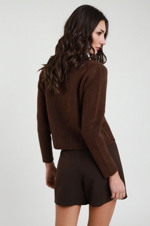 Cardigan Over Corto con Scollo V Profondo, Chiusura 3 Bottoni.