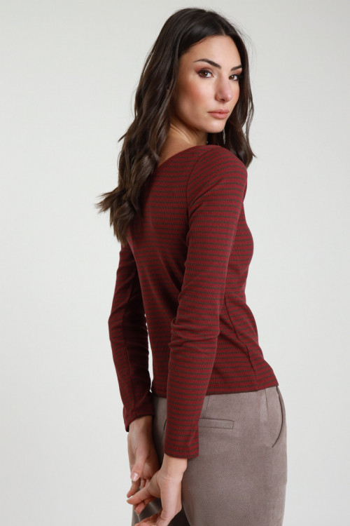 Crew Neck Long Sleeves Striped T-Shirt With Cashmere. 47%md 33%vi 9%pa 6%ea 5%ws