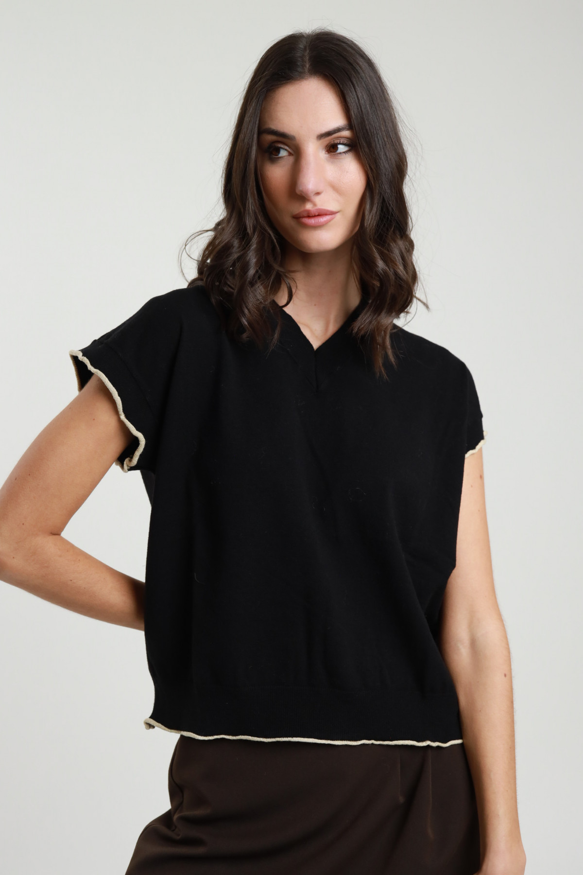 Über Ausschnitt V mit gerippten Kanten. 52%VI 28%PL 16%PA