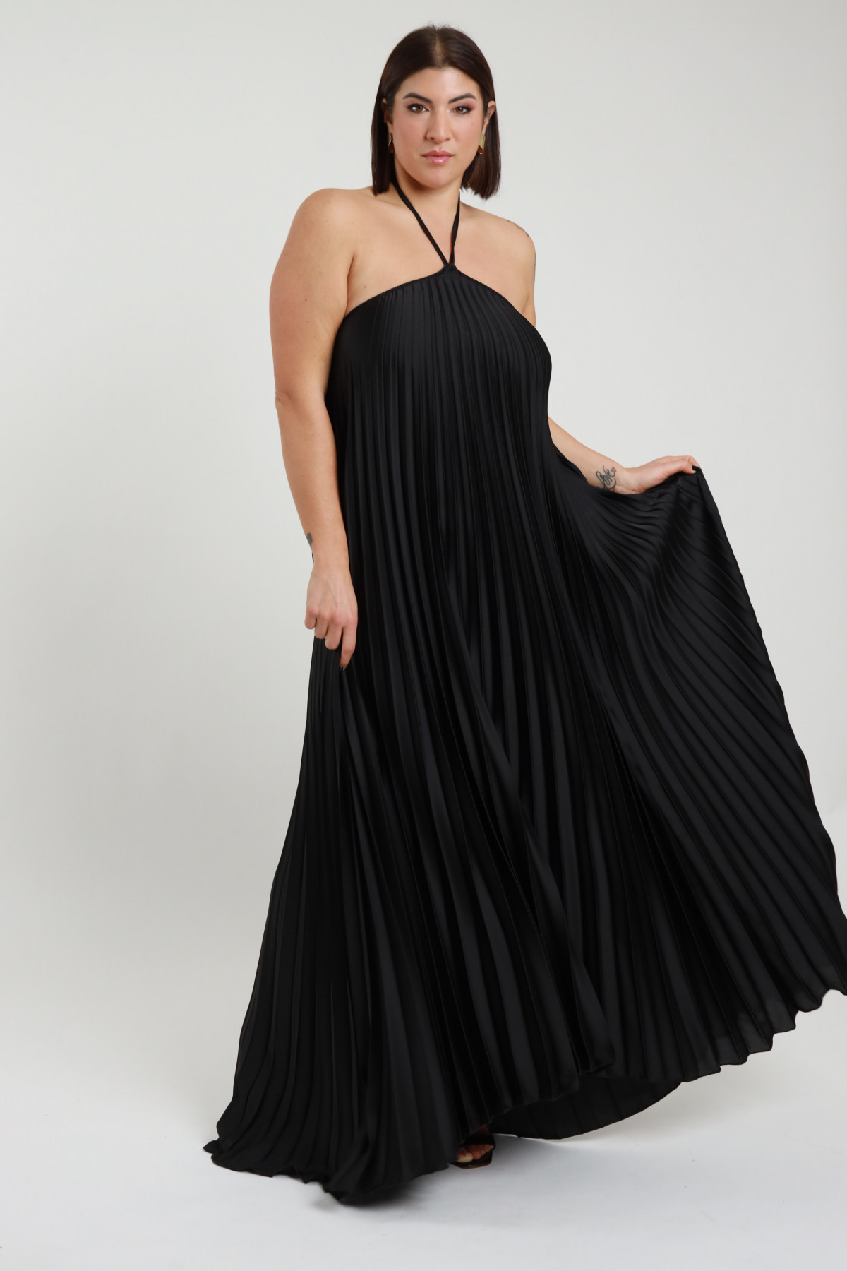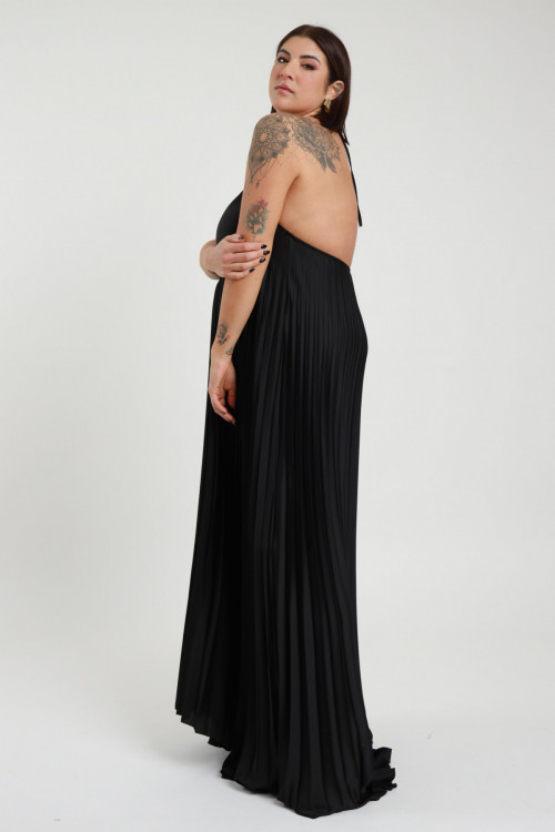 Abito Lungo in Lurex Mezze Maniche con Gonna Plissettata - Linea Curvy Susy Star.