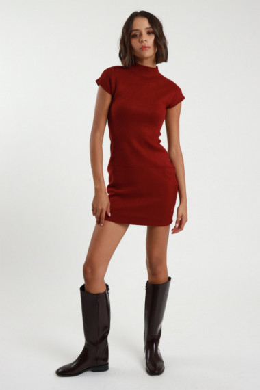 Kurzes gestricktes Kleid, kurze Ärmel. 89%VI 12%NY